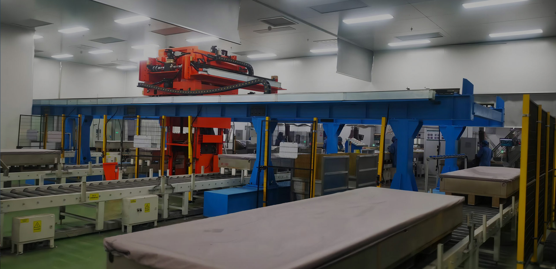 高剛性的桁架機(jī)械人結(jié)構(gòu),基于三面滾輪式滑塊-導(dǎo)軌副的高剛性的運(yùn)動(dòng)副,采用重載形式的橫梁結(jié)構(gòu),本體整體式鑄造的方式,承載的鋼結(jié)構(gòu)采用熱補(bǔ)償機(jī)構(gòu),制造出了大承載能力、高速及高精度的桁架機(jī)器人